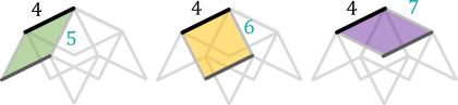 If the move from cell \(i\) has index \(5\), then there are three potential rails incident with cell \(i\), and the corresponding parallel moves are separated from cell \(i\) by moves \(4\), \(6\) or \(7\), as shown below.
