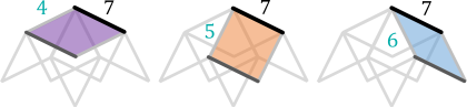 If the move from cell \(i\) has index \(7\), then there are three potential rails incident with cell \(i\), and the corresponding parallel moves are separated from cell \(i\) by moves \(4\), \(5\) or \(6\), as shown below.