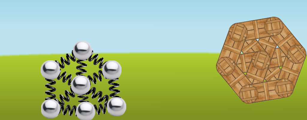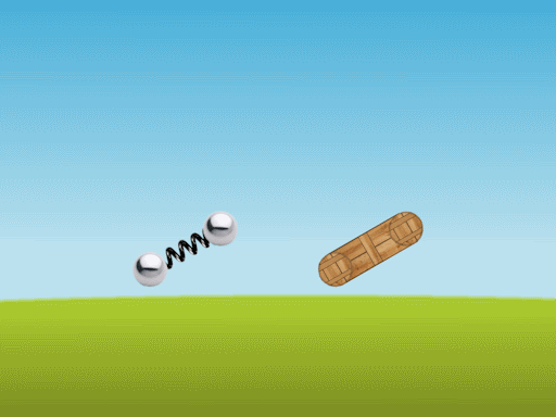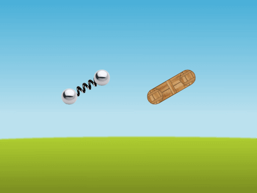 The Ball and Spring Toy applies Verlet integration and Gauss-Seidel Relaxation to bodies made up of balls connected by springs and sticks. The bodies fall under gravity and you can apply a random impulse to them to see how they react The types of bodies available are chains of length 2, 3, and 4; wheels of size 4, 5, and 6; and a ragdoll robot (see Fig. 1). For each body type except the ragdoll robot you are given two bodies, one with springs and one with sticks. The ragdoll robot has some primitive AI that attempts to make it stand up and move to the center of the window.