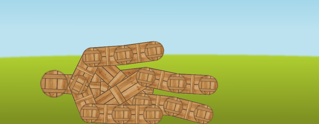 Finally, Woody the ragdoll robot (see Fig. 12) is an instance of CRagdoll made up of both sticks and springs. In addition to the constructor, CRagdoll has various functions that implement the rule-based AI that makes it jump back onto its feet after it has fallen (see Fig. 3).