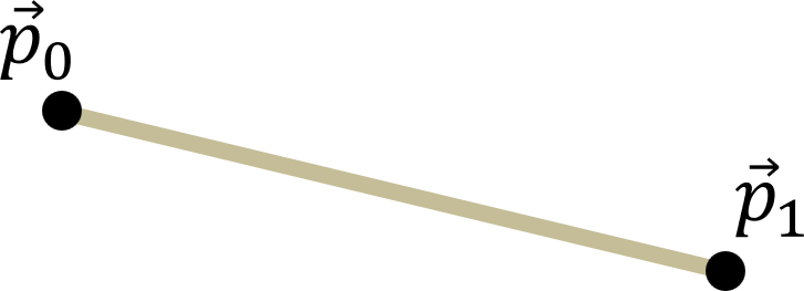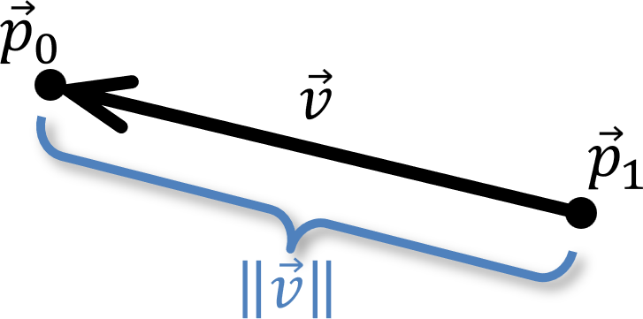 Suppose we have a stick of length \(d\) whose end points are at positions \(\vec{p}_0\) and \(\vec{p}_1\) after they have been moved independently as shown in Fig. 5. Let \(\vec{v} = \vec{p}_0 - \vec{p}_1\) be the vector from \(\vec{p}_1\) to \(\vec{p}_0\) as shown in Fig. 6 and let us suppose that \(\Vert \vec{v} \Vert \not= d\). We will displace the end points along the stick by an equal amount so that the distance between them is \(d\).