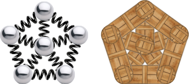 CWheel is a circle of points connected to a central point which acts as a hub. Successive levels show wheels that are square, pentagonal, and hexagonal. Fig. 11 shows a pentagonal wheel. CWheel consists of just a constructor that puts the points in the right position and connects them with sticks or springs as required.