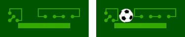 The key to this toy is the single-bit counter shown in Fig. 2. Bits that are 1 are represented by soccer balls. Bits that are zero are represented by the lack of a soccer ball. For example, the image on the left of Fig. 2 represents a 0, and the image on the right of Fig. 2 represents a 1.