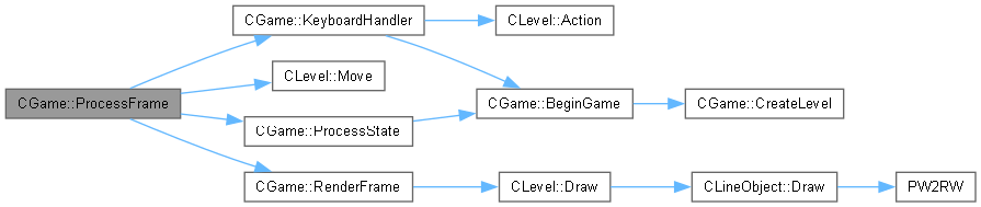 This function will be called regularly to process and render a frame of animation, which involves the following. Handle keyboard input. Move the game objects in physics world. Render a frame of animation. Process any changes to the current game state. There's also some extra processing to be done outside the physics in order to control the motion of the nautilus gears, the car, the pulleys, and the rack-and-pinion.
