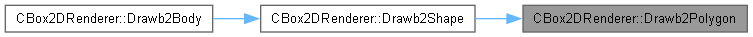 Draw a Box2D polygon shape using lines. Iterate through the polygon points, drawing a line from each one to the one before it. The line from the first point to the last one is a special case.