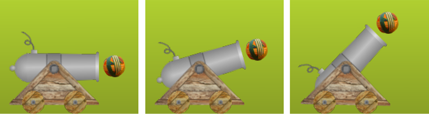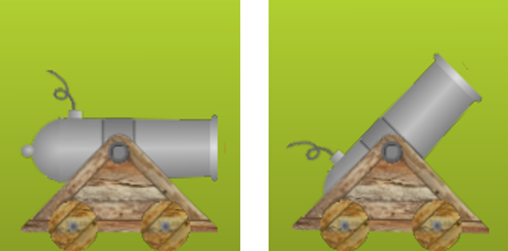 If the cannon barrel is rotated, then the vector from the center of the cannon barrel to the center of the cannonball must be rotated by the same amount as shown in Fig. 9. The impulse given to the cannonball must be in the direction of this vector.