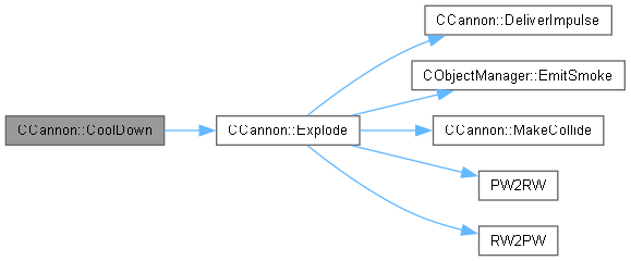 Cool the cannon's temperature, unless it is too high already, in which case mark it for exploding on the next fire.