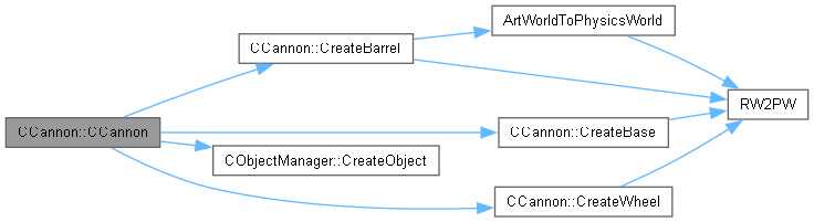 Null constructor. Create a cannon in Physics World and Object World, linking the two representations together. All positions are hard-coded.