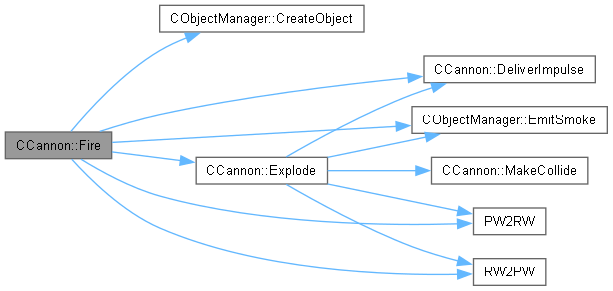 Create a cannonball in both Render World and Physics World and send it on its way. Apply a recoil impulse to the cannon in Physics World. Increment the cannon's temperature. All this is assuming that the cannon isn't nose down and hasn't already exploded.