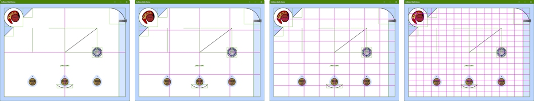 As mentioned in Section 2.8, selecting Show AABBs from the dialog box will draw the leaf node areas of the AABB in magenta as shown in Fig. 23.