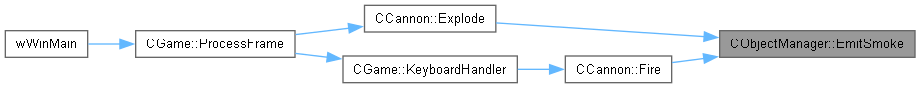 Create a smoke particle using the front particle engine so that it appears in front of the cannon. This particle will scale in and fade out over its lifespan, which is hard-coded. Friction is added to make it slow down horizontally, and upward acceleration is added to make it appear to rise due to the high temperature of an expolosion.