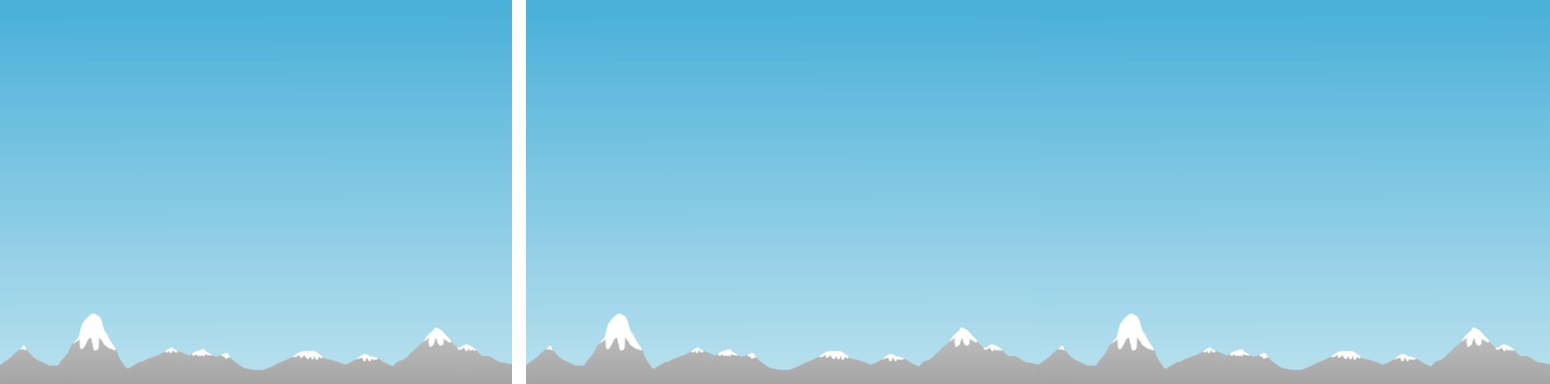 The background for Ned's Turkey Farm consists of a sky image (Fig. 6, left) that can be repeated horizontally without the join showing (Fig. 6, right), and a ground image (Fig. 7, left) that can be repeated horizontally without the join showing (Fig. 7, right).