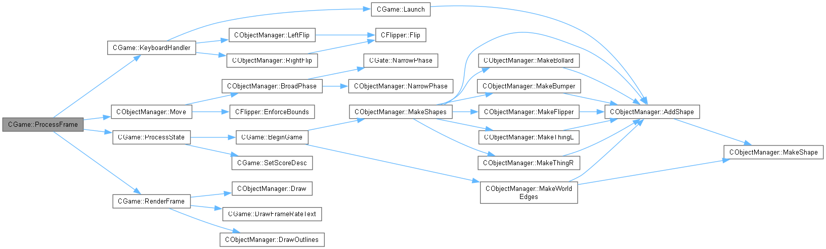 The game class is the object-oriented implementation of the game. This class must contain the following public member functions. Initialize() does initialization and will be run exactly once at the start of the game. ProcessFrame() will be called once per frame to create and render the next animation frame. Release() will be called at game exit but before any destructors are run.