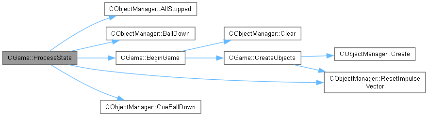 Process any changes to the current game state. If the game is in state eGameState::Loading and both the renderer and the sound manager have finished loading (which may or may not be multithreaded), then begin the game. Switch between playing, win, lose, and setup cue-ball states as appropriate.