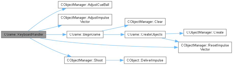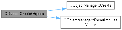 Ask the object manager to create the game objects. This game has only two objects, the 8-ball and the cue-ball. This function creates them and sets the impulse vector to point from the cue-ball to the 8-ball.