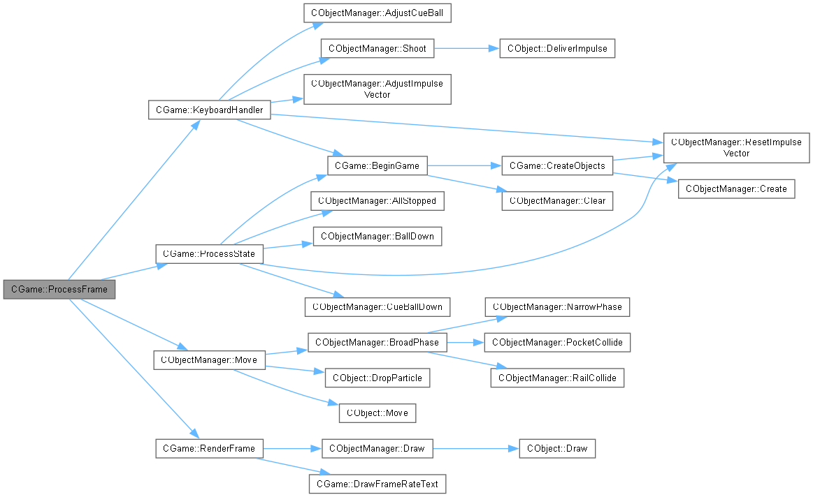 This function will be called regularly to process and render a frame of animation, which involves the following. Handle keyboard input. Notify the sound player at the start of each frame so that it can prevent multiple copies of a sound from starting on the same frame.