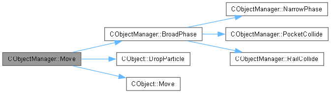 Move all of the objects in the object list and perform broad phase collision detection and response. If in Step Mode, drop a particle.