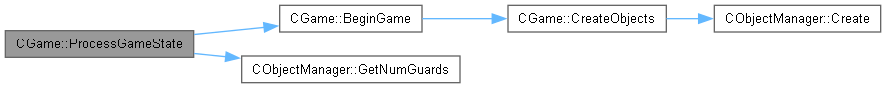 Process any changes to the current game state. If the game is in state eGameState::Loading and both the renderer and the sound manager have finished loading (which may or may not be multithreaded), then begin the game. If the game is currently playing, then if the player has been killed or all NPCs have been killed, then enter the wait state. If the game has been in the wait state for longer than 3 seconds, then restart the game.