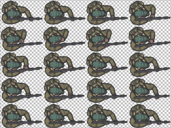 Every time the guard files a bullet, it displays a reload animation as shown in Fig. 6. The animation frames are loaded from a sprite sheet as shown in Fig. 7.